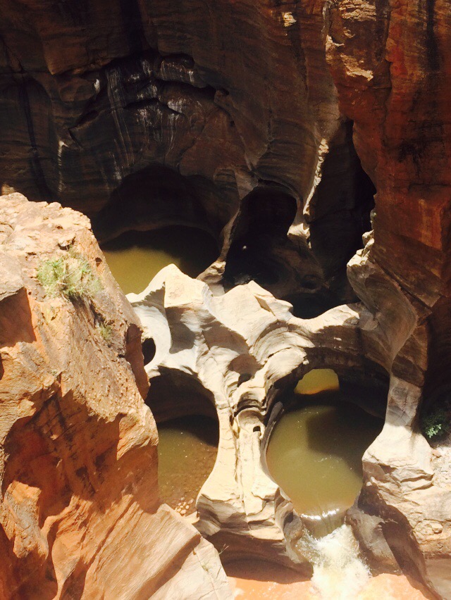 We stopped quickly in another little tourist town called Graskop where tourist coaches drop people off in pristine safari type clothes with cameras round their necks so they can buy African arts & crafts before getting back on the bus. We had a breakfast of pancakes – big in the area probably because of the Dutch influence – and then started the trail up the canyon road. It was largely deserted. We got the impression we were the only people travelling around independently which is nice in one way because you get places to yourself but on the other hand it’s a bit sad if it’s because people can’t be bothered to physically go and see things of natural beauty anymore. It’s really not expensive to travel around and stay in South Africa – maybe it’s its reputation of not being safe. I can see the razor wire everywhere around white land owners’ properties, but I haven’t seen or felt any signs of danger yet.