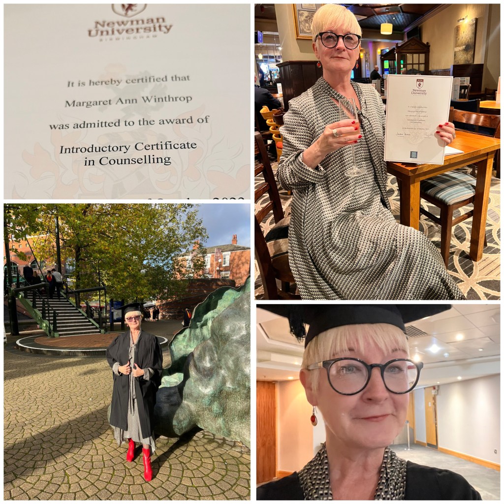 But I’d always been a very good listener. So I started my journey at Birmingham Newman University, enrolling on its Introductory Certificate in Counselling and this time last year, I found myself driving back and forth every Monday night to spend three hours with a group of strangers learning the basics about the workings of the mind.